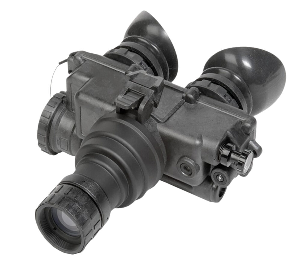 The PVS-7 is widely recognized for its unsurpassed dependability and ergonomic design. This U.S. Military-grade night vision goggle system has repeatedly proven its worth in combat, and is the highest-quality AN/PVS-7 B/D system on the market. The PVS-7 can be outfitted with high-performance Gen 2+ and Gen 3 image intensifier tubes (available in Green phosphor or P45 white phosphor). The PVS-7 is equipped with Automatic Brightness Control (ABC) to adjust image brightness in changing light conditions to maintain image definition and clarity. The builtin infrared illuminator provides a light source beyond the visible spectrum to enable the user to operate in complete darkness without being detected. Additionally, the PVS-7 has a bright light cut-off feature to protect the image tube from sources of intense light, and a flip-up shut-off feature that can be used with the optional helmet mount system. The PVS-7 has two LED indicators in the eyepiece for the IR illuminator on and low battery indicator. Lightweight, tough, and versatile, the PVS-7 can be handheld, or mounted to the users head/helmet. It is compatible with a focal magnifier lenses for superior long-range viewing. Includes: Head Mount Assembly, Medium & Thick Brow Pads, Eye Cups, Soft Carrying Case, Daylight Filter, Shoulder Strap, Lens Paper, Sacrificial Window, Demist Shields, Operators Manual