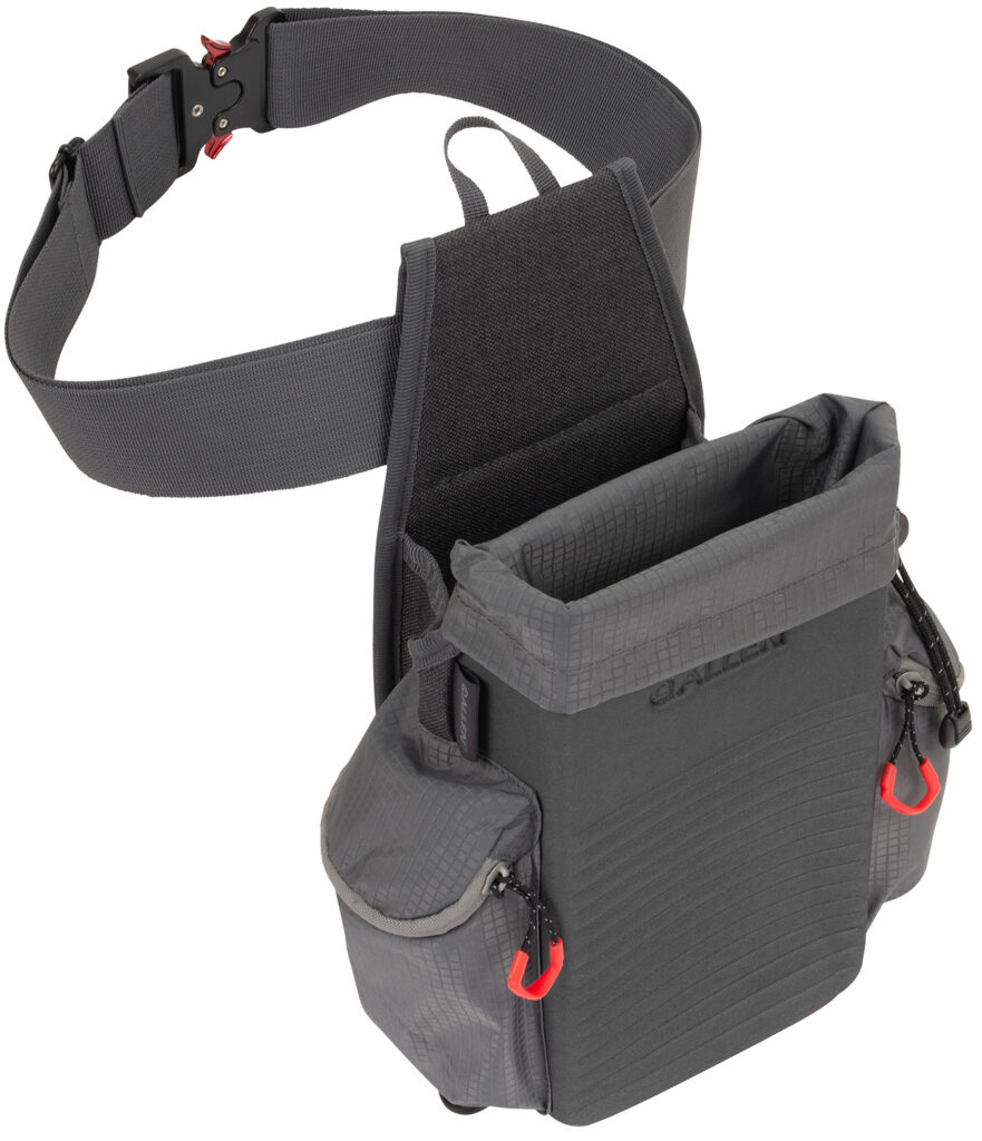 The Competitor All-In-One Shell Bag by Allen is designed for the serious trap and skeet shooter. Made from durable, gray, molded EVA material and offers the most convenient way to empty your hull bag. When your hull bag is full, roll the top part of the bag up and draw it closed with the drawstring and remove it from the shell bag. Empty the bag into your used shell container and replace the hull bag into the Competitor Shell Bag and you are ready for another round. The shell compartment holds two standard size boxes of 2-3/4 inch 12 gauge shells. Each side has a zippered pocket and a D-ring below it so you can store or attach any accessories you need. The Competitor Shell Bag comes with a 2-inch webbed belt that adjusts up to 52-inches and has a heavy-duty, metal, quick-release buckle.