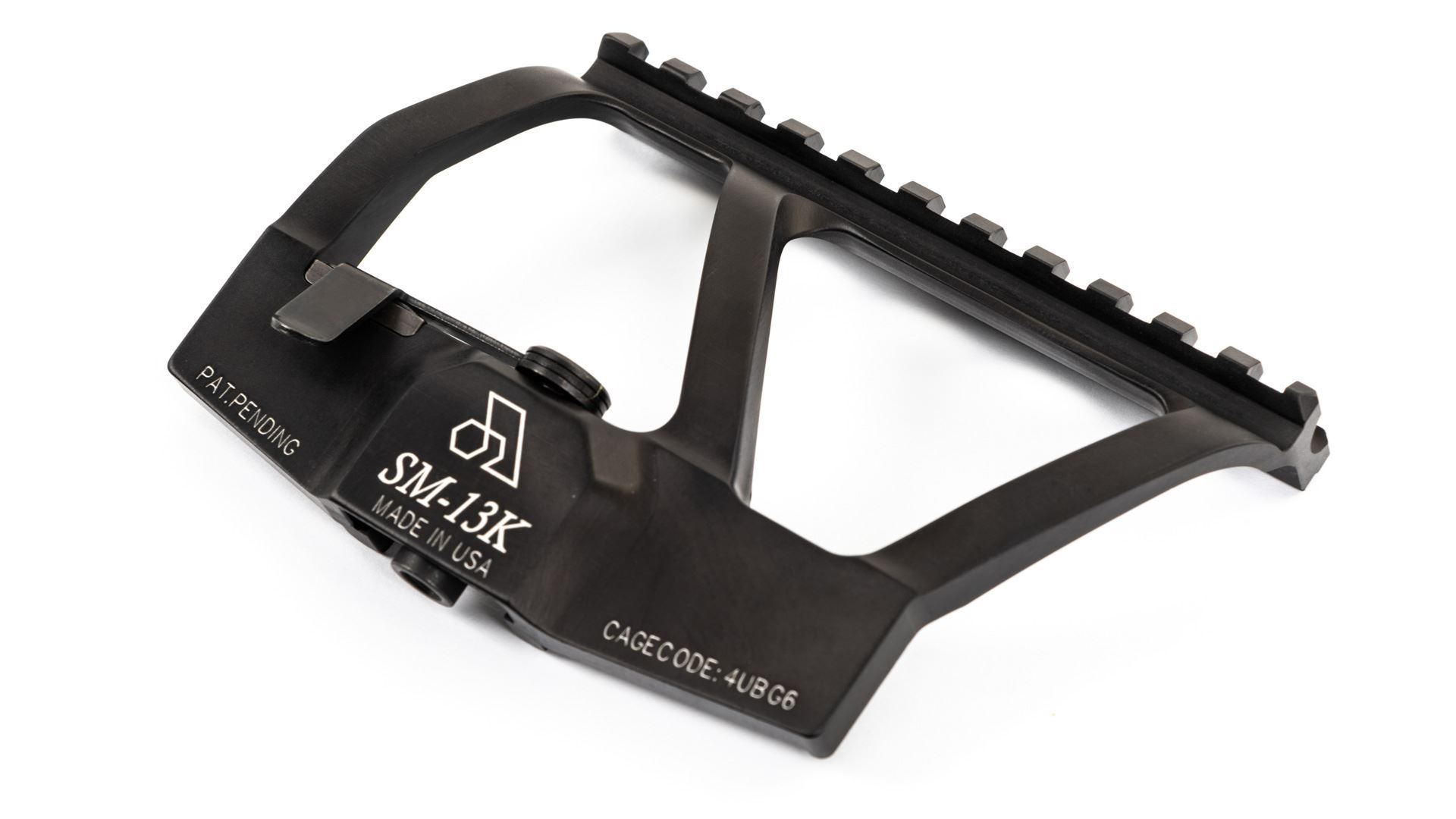 The next generation of the SM-13 scope mount has arrived the SM-13K! Built using the original SM-13 platform the new SM-13K was shortened and angled toward the rear of the receiver allowing the mount to sit behind the rear sight of the AKS-74U variants that have a notch sight like the SBRs hinged dust covered AK pistols and other Krinkov variants. The SM-13K maintains the one-piece CNC precision machining and is manufactured from aircraft grade aluminum alloy for a minimum weight of 4.88 ounces and maximum strength.