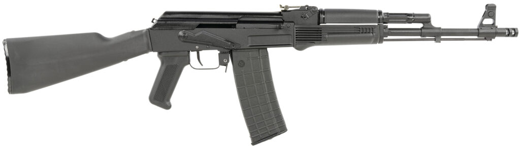 Arsenal SAM5 5.56x45mm AK47 rifle, milled and forged receiver, 16.3" chrome lined hammer forged barrel, 14x1mm left-hand muzzle threads, AK-351 muzzle brake, FIME Enhanced Fire Control Group, cleaning rod, bayonet lug, black polymer furniture, intermediate length buttstock, scope rail, one 30 round magazine, sling, oil bottle, and cleaning kit.