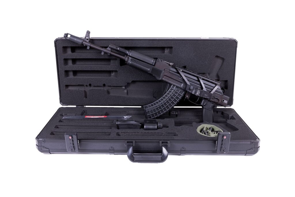 This package includes a 30rd M-47W magazine SM-13 Scope Mount and the Arsenal Custom Hard Case for SAM7SF AK-47 rifles. The interior is lined with CNC machined hard foam custom designed to fit SAM7SF Series rifle with cut outs for magazines sling cleaning kit and oil bottle. The case is fabricated with aluminum reinforced corners and edges to maximize impact resistance. The combination locks include TSA locks to ensure compliance with TSA regulations. The Arsenal logo is proudly displayed on the top of the case.
