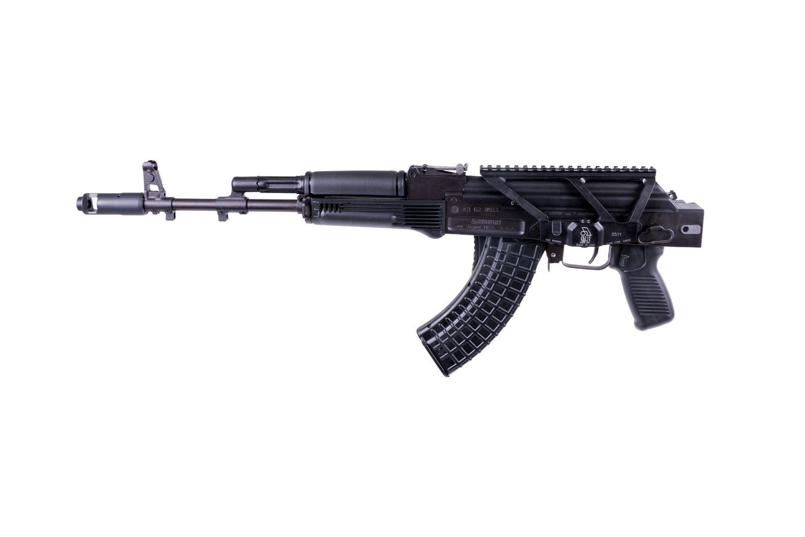 SAM7SF-86 | SAM7SF model 7.62x39mm caliber rifle milled and forged receiver enhanced FCG chrome lined hammer forged barrel 24x1.5mm muzzle right hand threads muzzle brake bayonet and accessory lugs right-side folding tubular buttstock black polymer pistol grip and handguards stainless steel heat shield ambidextrous safety lever scope rail sectional cleaning rod black 10-round magazine black 30rd magazine SM-13 Scope Mount sling oil bottle cleaning kit and Arsenal Hard Case.