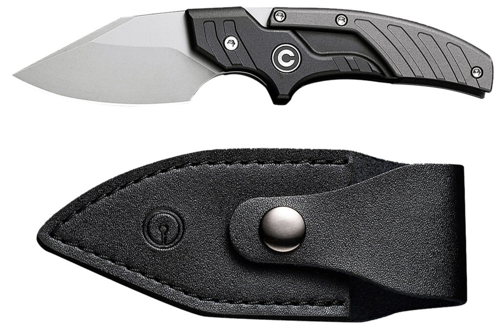 Civivi Typhoeus adjustable fixed blade knife feature a 2 into 1 blade; stonewashed blade and aluminum handle. Includes leather sheath.