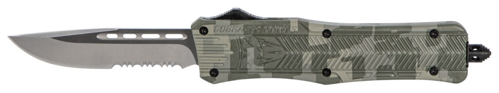 CobraTec Knives MADCCTK1MDS CTK-1 Medium 3" OTF Part Serrated D2 Steel Blade Army DigiCamo Aluminum Handle Features Glass Breaker Includes Pocket Clip