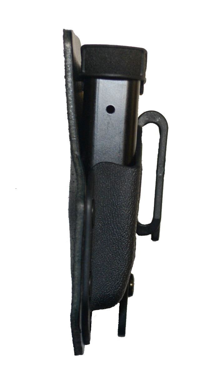 The eV2™ Mag Pouch is an inside the waistband (IWB) pouch designed for carrying one additional spare magazine. The pouch is of hybrid design using top grain cow hide as the material designed to sit against the body and a Kydex® pouch to sit for holding the magazine. The pouch attaches to the belt with a nylon clip that is ride height adjustable allowing the user to set the height of the magazine in relation to their belt. The magazine pouch is also tuckable allowing the shirt to be tucked in over the magazine into the pants for deep concealment.