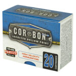 CORBON JHP is the traditional hollow point that put CORBON on the map. JHP is proven ammunition that provides reliable penetration and expansion. The internal and external serrations and soft lead cavity provide stopping power and an average penetration of 9 to 15 inches in ballistic gelatin.