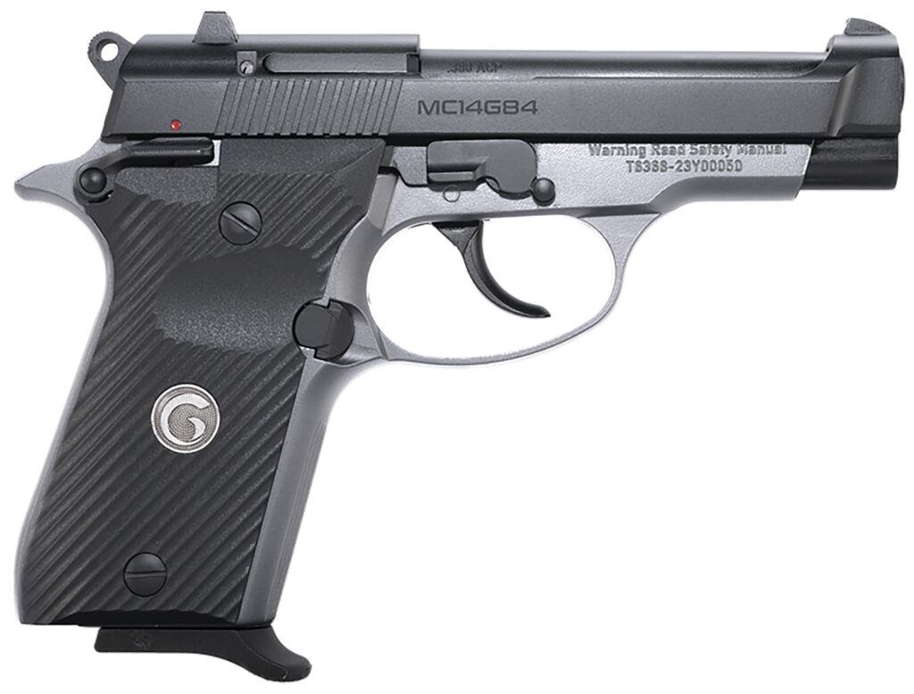 The MC14G84, a double stacked pistol designed to set new standards in concealed carry. 84 configuration. The Girsan MC14G84 will share magazine compatibility with the traditional MC14 as well as similar 84 series magazines. This pistol features a 13+1 magazine capacity; composite grips; 3-dot sights; an aluminum lightweight frame; smooth DA/SA trigger and an ambidextrous frame safety.