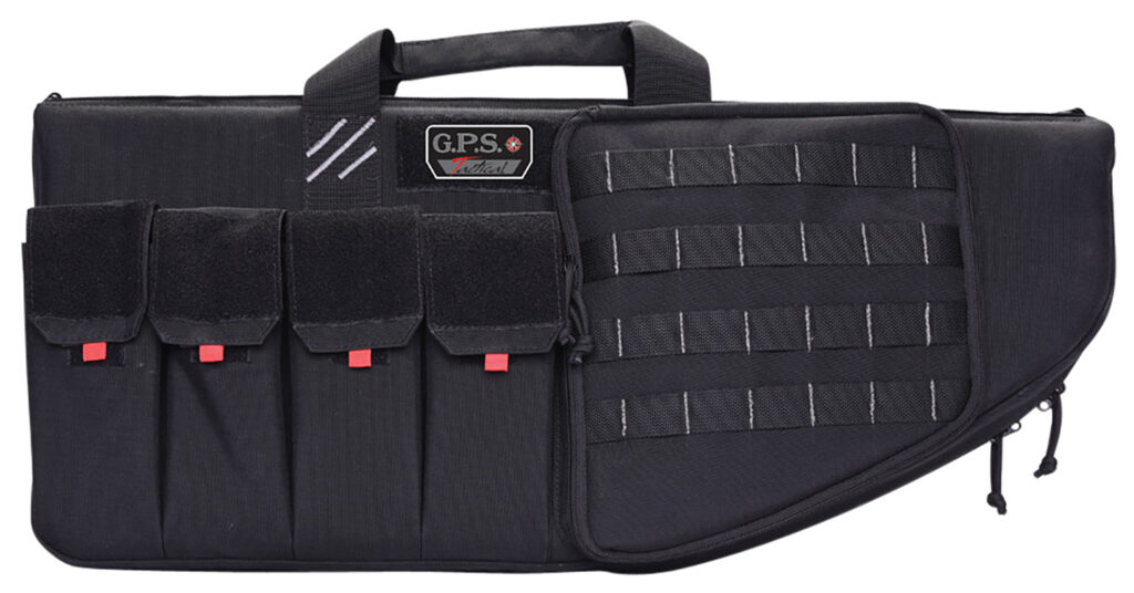 This tactical AR weapons case utilizes the Visual ID Storage system for quick identification of gear. The front storage pocket features a modular handgun retention system and magazine storage pouches that are removable and can be configured for each users needs. The right front storage pocket has separate velour lined pockets for shooting glasses and ear plugs plus extra room for more. Metal D Rings on both ends to easily hang the case.