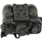 The LE420G is a 7075 Aluminum bodied multi- laser aiming device. Includes class IIIA visible green laser, class 2M IR laser, and IR Illuminator coaxially mounted for easy zeroing. Also features a 600 Lumen white light, IR Illuminator focus adjustment, quick release picatinny rail mount, remote pressure switch, IP67 water resistance, and is powered by two CR123 batteries for increased run-time.