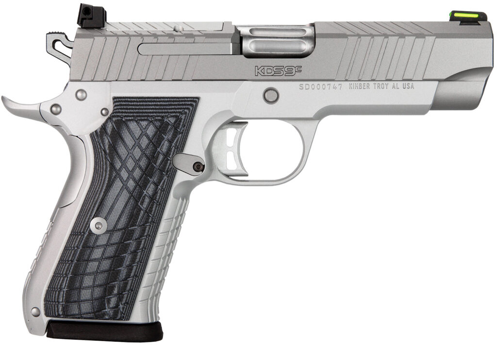 The KDS9c from Kimber is a testament to over 4 decades of the highest level of firearms manufacturing. The KDS9c was built from the ground up as a personal protection masterpiece. The barrel is fully fluted, crowned, and ramped. Our proprietary bore sizing process delivers match grade accuracy with every shot. Our engineers specified 7075 aerospace-grade aluminum to develop the frame featuring a fully integrated cross-hatch textured design for the front and the back strap that flows with the grip to deliver superior grip ergonomics. The magazine release is reversible for left and right-handed shooters. A crisp 3.5-4.5lb trigger pull comes standard as well as two 15-round magazines which anchor the KDS9c as the premier personal protection platform that enhances your ability to defend yourself no matter the situation.