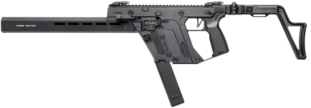 Tailored for recreational use and competition in pistol caliber carbine divisions, the KRISS Vector Gen3 CRB is the most accessible model with a 16" rifle length barrel and is compliant in most states. The upper and lower housings have been reimagined and enhanced for adaptability. The CRB comes equipped with a refreshed barrel shroud with M-LOK mounting points. The CRB is fed with full size Glock magazines, ensuring seamless interchangeability for users familiar with Glock-style mags. Features interchangeable AR15/M16 pistol grip; adjustable folding stock; Glock magazine compatible; 5 M-LOK slot on each side and 6 slots on the bottom; ambidextrous reversible magazine release and 4-Pin tool less disassembly. Includes magazine, cleaning kit, cable lock and manual.