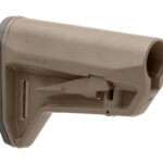The MOE SL-M Carbine Stock - Mil-Spec is a drop-in replacement buttstock for AR15/M4 Mil-Spec carbine buffer tubes. It was specifically developed for ultra-compact, PDW-style military platform requirements and for users desiring a smaller, lighter stock. Similar to the SL-K, the SL-M features a shorter and slimmer profile that is optimized for PDW-length receiver extensions. With its small, non-slip rubber butt-pad and an angled toe, the SL-M was engineered to support shoulder transitions, even while wearing body armor and modular gear. It includes a unique, ambidextrous release latch that is shielded to prevent accidental deployment and minimizes rattle on the receiver extension without requiring additional locks, levers, or springs. The 1.25" footman's loop accepts an optional M-LOK QD Sling Mount for push-button style QD sling swivels.
