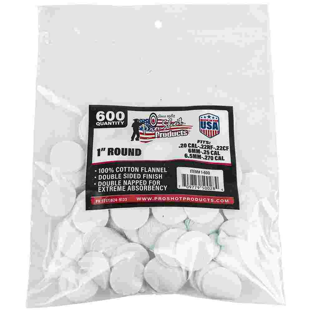 1" Round .22 Cal.-.270 Cal. 100% Cotton Flannel Gun Cleaning Patches - 600 Count