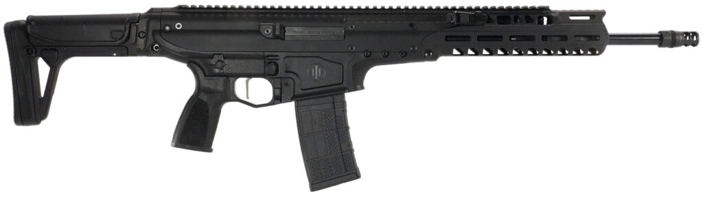 The PWS UXR features a Barrel Xchange System: An innovative barrel exchange system enabling users to switch between calibers and barrel lengths; Modified Long Stroke Piston System; Bore Evacuator; ambidextrous receiver & buttstock, folding buttstock with cheek and LOP adjustments. Configurable to either left or right-side folding. Mounted using an industry standard 1913 picatinny rail attached to the trigger housing; three position adjustable gas system including a dedicated suppressor setting; PWS FRC compensator; M-LOK handguard; Pin and Welded FRC Compensator, the extended FRC compensator is pin/welded to the barrel.