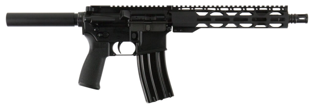 The Radical Firearms complete AR-Pistol is a fully Mil-Spec AR-15 pistol built using law enforcement grade upper receivers and mil spec lowers. The 4140 chromoly vanadium steel barrel is Melonite treated for a harder-than chrome finish. This same finish is applied to the bolt carrier groups, helping to reduce receiver wear and increase reliability. The bolt heads are MIL-STD and MPI for quality assurance. The full-length, free-float handguard keeps your hands cool and provides plenty of room for accessories. This model has a 10.5" barrel, Radical Firearms 10" RPR handguard with Magpul M-LOK slots on sides and bottom of the rail.