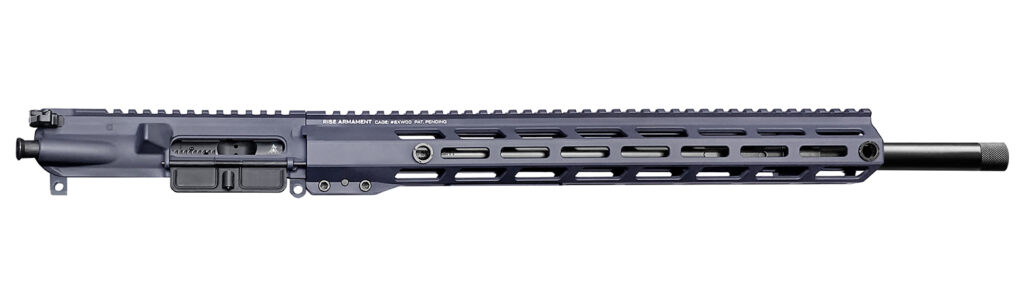 Barrel: 18-inch 416R stainless steel, button-rifled, air-gauged and tested; threaded. Handguard: Free-floating skeletonized aluminum with continuous 12 oclock Picatinny rail, MLOK slots, four threaded steel sling swivel QD inserts, a snag-free front, and patent-pending attachment lock to maintain your zero. Charging Handle: RISE ambidextrous charging handle for right- or left-handed operation and improved ease of use with optics and gloves. Bolt Carrier Group: Premium BCG with 9310 bolt, individually MPI tested, staked gas key, durable black nitride finish. Receiver: Forged billet aluminum