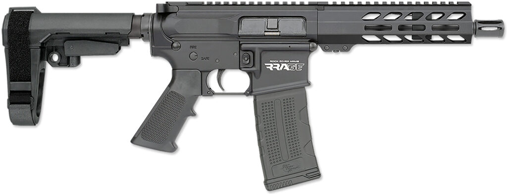 The Rock River Arms RRAGE features a forged LAR-15 lower receiver; extruded A4w/port door. no forward assist upper receiver; threaded barrel; A2 flash hider; SB Tactical SBA3 adjustable stabilizing arm brace and a lightweight aluminum 7.25" free floating handguard. Includes 30rd magazine and manual.
