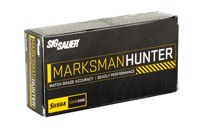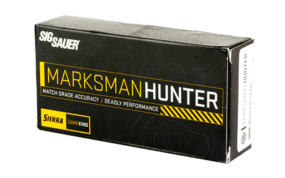 The Sig Sauer Marksman Hunter line of ammunition was designed with the practical hunter in mind. Precision-loaded for competition-level accuracy at long range, these rounds will be your reliable companion in the field. The boat tail design reduces drag, ensuring a flatter trajectory and less wind drift - for those moments when precision really counts. Each bullet features a thick jacket for consistent performance on medium game, with a skived bullet nose to ensure consistent expansion, delivering the power you need.