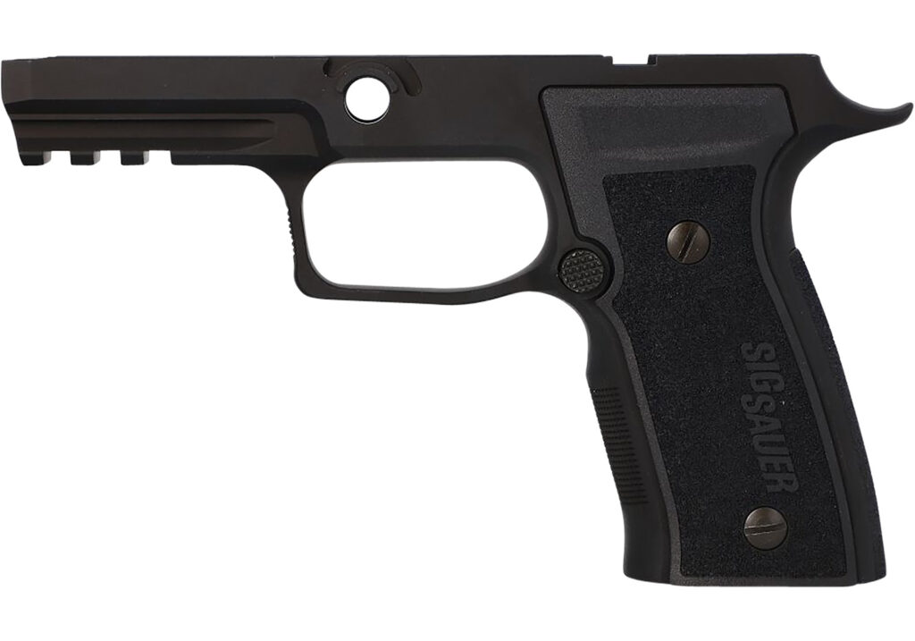 Install your P320 FCU (fire control unit) into the AXG (Alloy XSeries Grip) metal grip module to experience the unique blend of style and shootability of a classic metal frame pistol. Precision machined with deep undercuts and an extended beavertail for an ergonomic, comfortable fit and is fitted with interchangeable Black polymer grip panels and a Medium Black back strap. Specifications: Carry size, Aluminum alloy, Medium grip, Interchangeable black polymer grip panels, Black anodized grip module, Requires the 9mm, .357 SIG and .40AUTO slide and barrel. Please Note* This grip module will NOT work with the Manual Safety FCU.