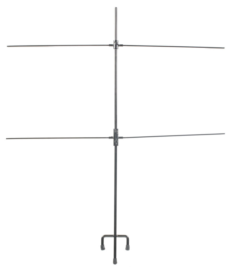 SME's Double Paper Target Stand is constructed with a 5/16" steel frame and has a black powder coat finish. The adjustable top horizontal bar accommodates various target sizes. It has a sturdy trident footer ground stake for stability and includes eight clips.