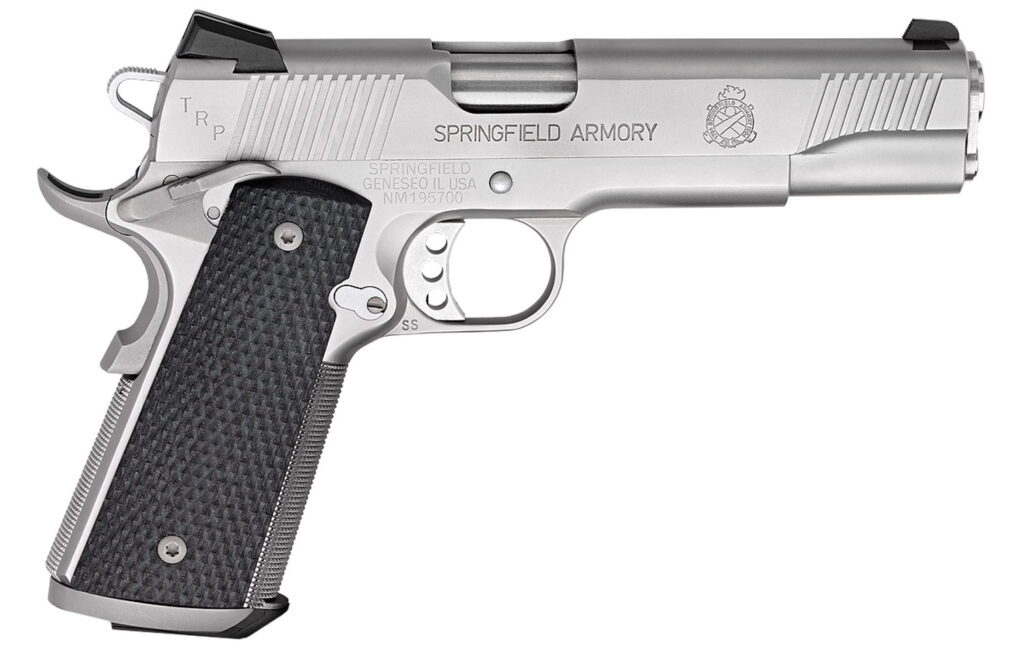 Springfield Armory took the 1911 a professional-grade weapon and made it into the legendary TRP. The Tactical Response Pistols are inspired by the Custom Professional Model HRT 1911 developed by Springfield Armory for the FBI. Built for fierce reliability and suited for defense and combat applications all TRP models start with a select fit forged frame and slide. From that robust foundation each model is duly equipped and finished in exacting detail. The Cerakote finish is environmentally resistant and self-lubricating, while its service-length match grade stainless steel barrel is competition-proven for exceptional close quarters performance. The TRP also features extended bilateral thumb safety, three-dot tritium night sights and 20 line-per-inch checkering on the front strap and mainspring housing offers the ideal grip for demanding operations. Includes additional Cocobolo grip, two magazines and soft case.