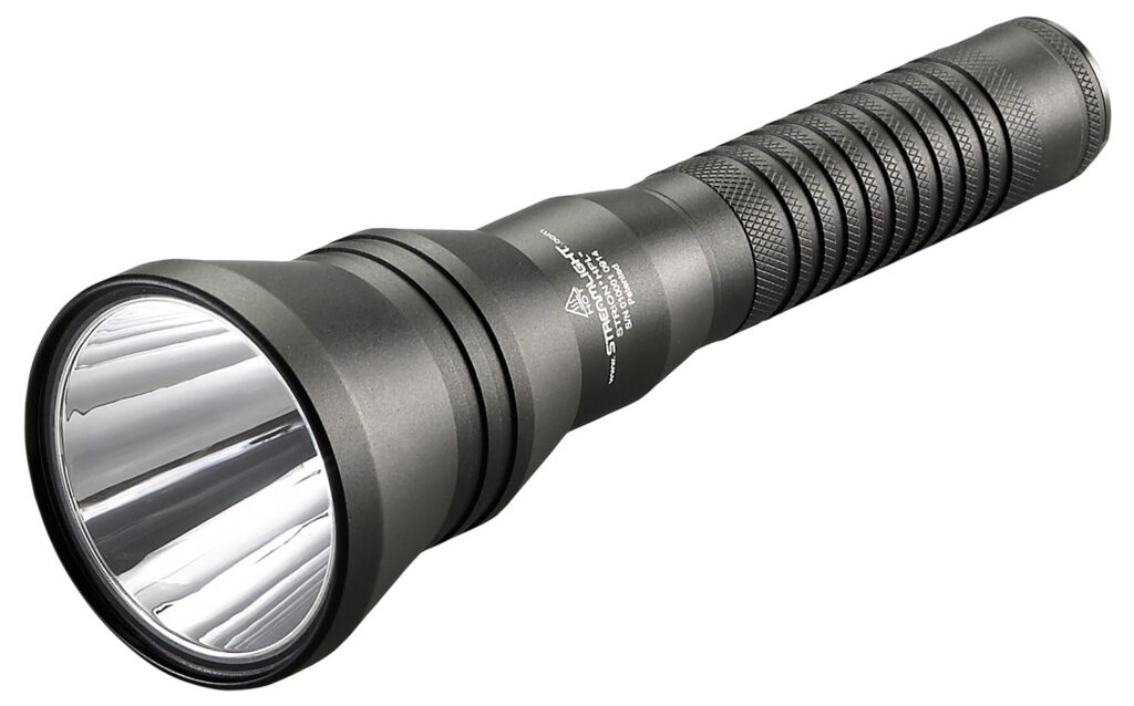 The Strion HPL is lightweight and ultra-compact, yet extremely powerful. It throws its long beam far out in the distance while casting plenty of peripheral light along the way. It is constructed from aluminum with an anodized finish, unbreakable polycarbonate lens with scratch-resistant coating, push-button tactical tail switch and is o-ring sealed with a knurled barrel for a sure grip. The Strion HPL features four modes of operation: high, medium, low, and strobe. Included is a snap-in charger that mounts in any position, two holders, and 120V AC/12V DC smart charger.