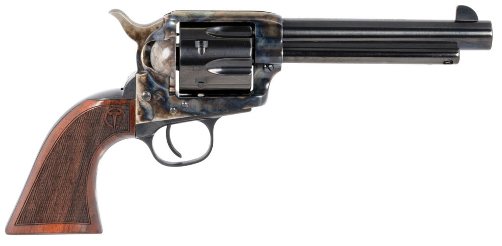 Taylors & Company 550813 Smoke Wagon 45 Colt (LC) Caliber with 5.50" Blued Finish Barrel, 6rd Capacity Blued Finish Cylinder, Color Case Hardened Finish Steel Frame & Checkered Walnut Grip