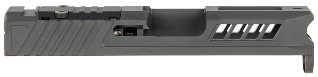 The Axiom Slide offers a sleek design with lightweight side-cut windows and a top-milled pocket for enhanced aesthetics and performance. The slide boasts advanced aggressive reduced and scalloped front and angled rear serrations providing a superior grip and making it easy to use. Equipped with an optic cut footprint, it's ready for various Trijicon RMR and Holosun optics.