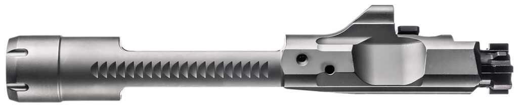Precision machined one-piece patented bolt carrier with correct timing, revised cam path, finished in industrial hard chrome. Patented enhanced cam pin for consistent lock up, shot after shot.