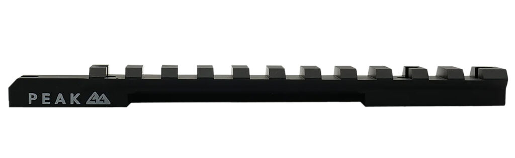 The PEAK 44 Picatinny Rail (JRail) features an innovative design with a rear cutout that ensures optimal scope placement for hunters and shooters who demand the most from their firearms. The Jrail rear cutout allows for the use of low rings, proper eye relief, and can accommodate scopes with large ocular and magnification rings. Constructed from aerospace aluminum the JRail fits picatinny/weaver style rings and features a 20 MOA cant.