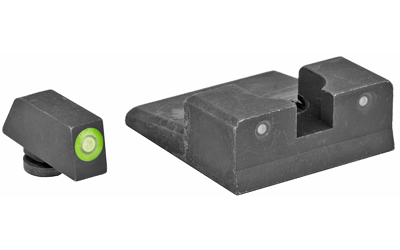 XS R3D Night Sights feature a traditional 3-dot tritium, notch and post sight picture. The blacked-out rear increases contrast against the front sight. The front sight is available in orange or green and is equipped with Ember(R) Glow Dot Technology. Ember absorbs ambient light and glows in low light. The front tritium lamp charges the Ember dot making the front sight glow brighter than the rear at all times, keeping focus downrange. R3D sights are the brightest notch and post option for fast and accurate shooting in bright and low light.